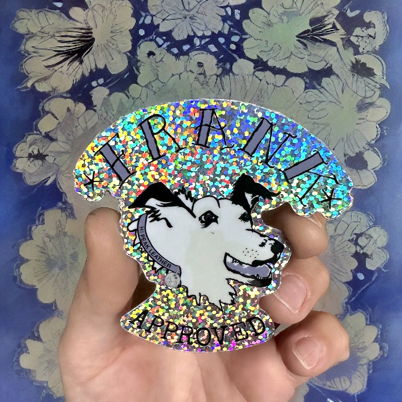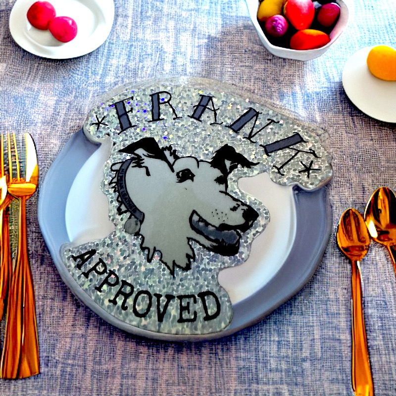 This groovy sticker is a shoutout to my furry sidekick, Frank. Its a spitting image of him really. And, the glitter represents his vivacious personality.